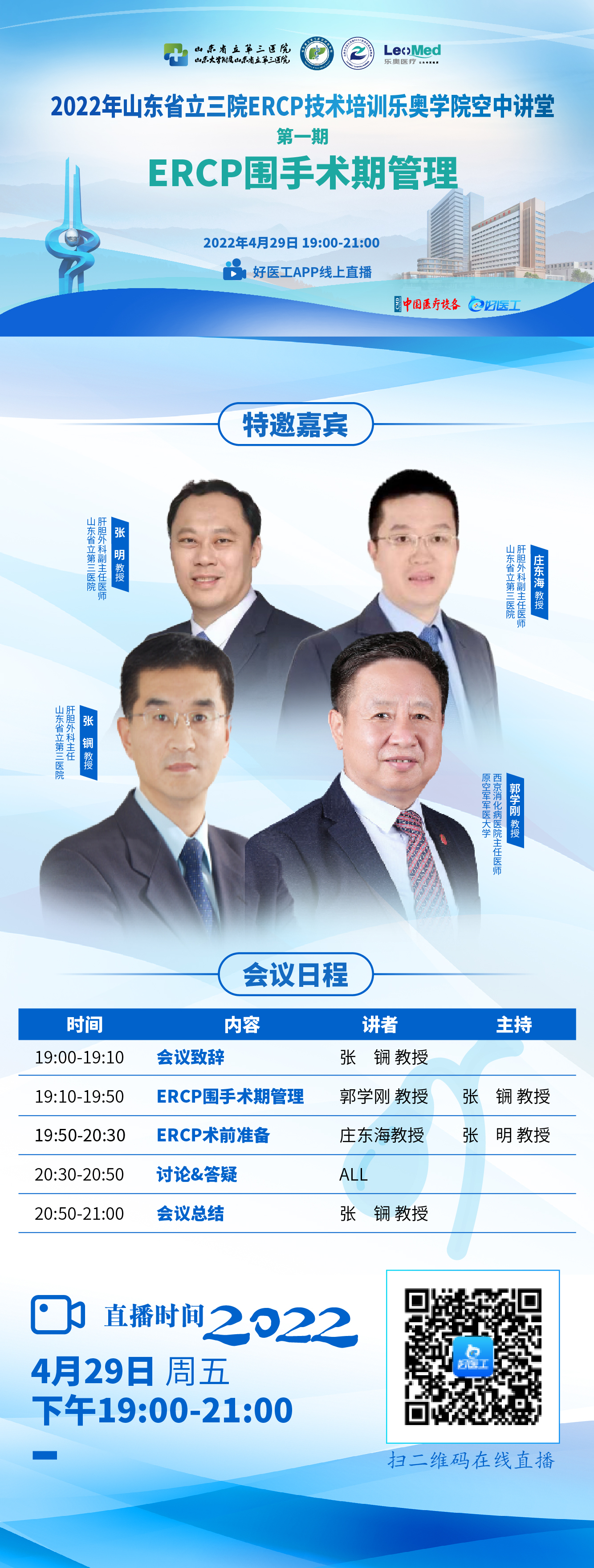 「直播預告」|【4月29日 19:00】山東省立三院ERCP技術培訓樂奧學院空中講堂第一期:ERCP圍手術期管理