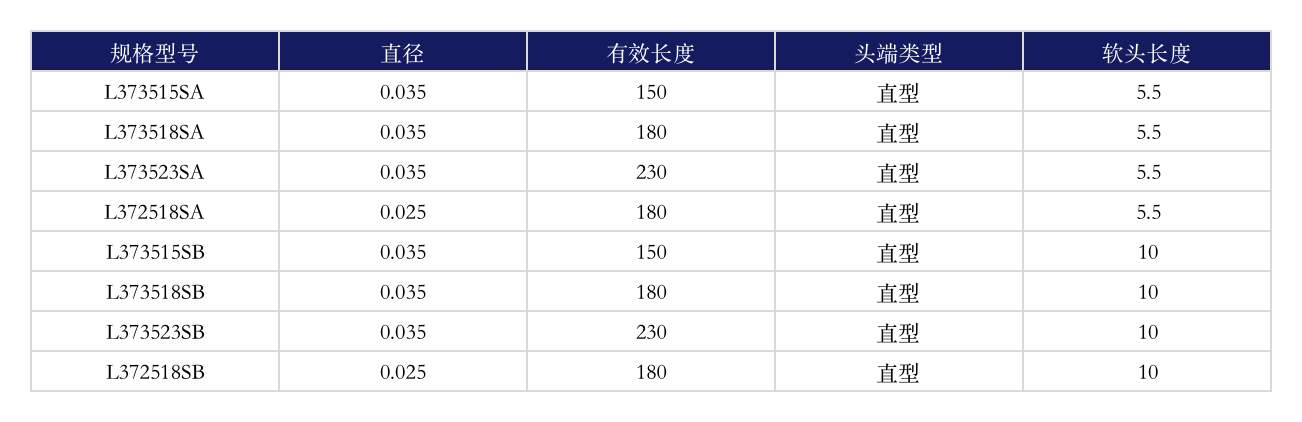 1、自潤滑;2、導絲體表面涂層采用雙色交替設計;3、優異的顯影性;4、鎳鈦合金內芯;5、喇叭口設計;6、頭端更長,主體更粗。