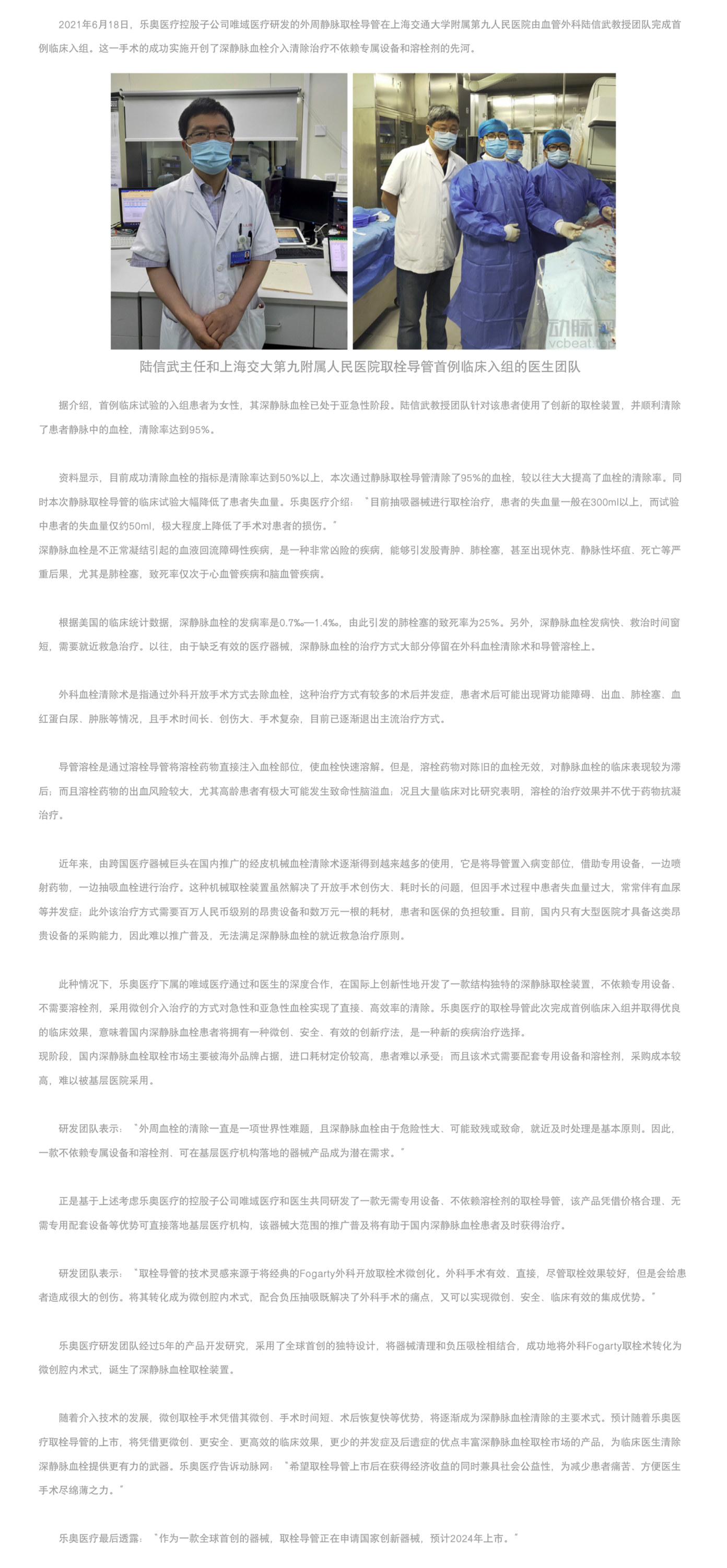 外周深靜脈血栓治療的重大突破,樂(lè)奧醫(yī)療靜脈取栓導(dǎo)管完成首例臨床入組