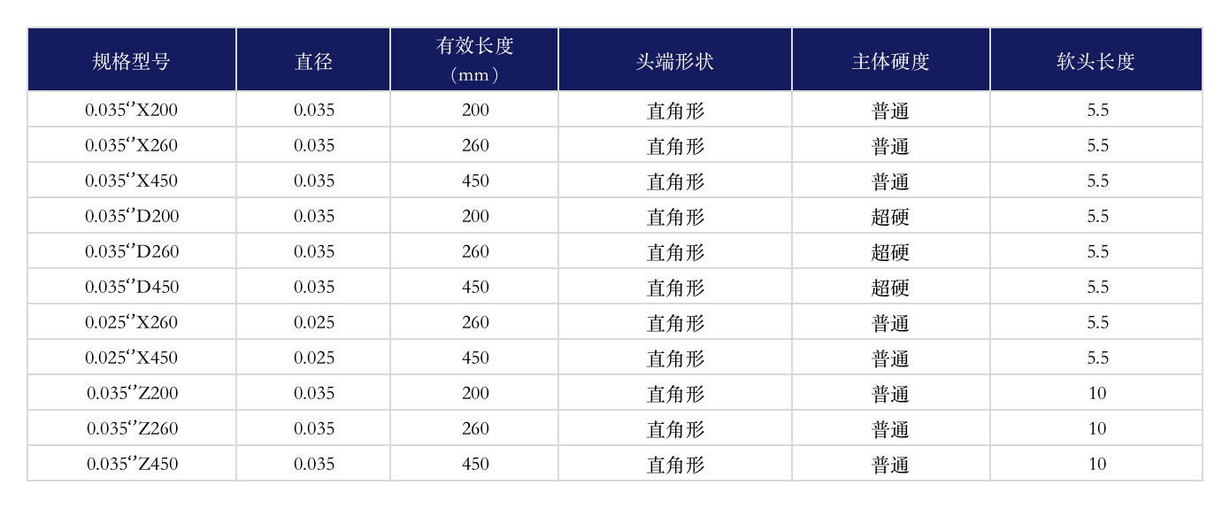 1、自潤滑;2、鎳鈦合金內(nèi)芯;3、導(dǎo)絲表面采用雙色交替;4、可在X射線下顯影;5、喇叭口設(shè)計(jì)。